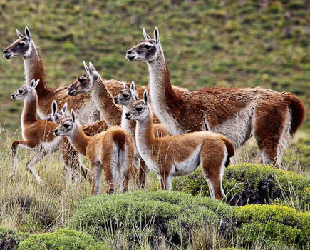 Guanacos y su cria en Valle Chacabuco